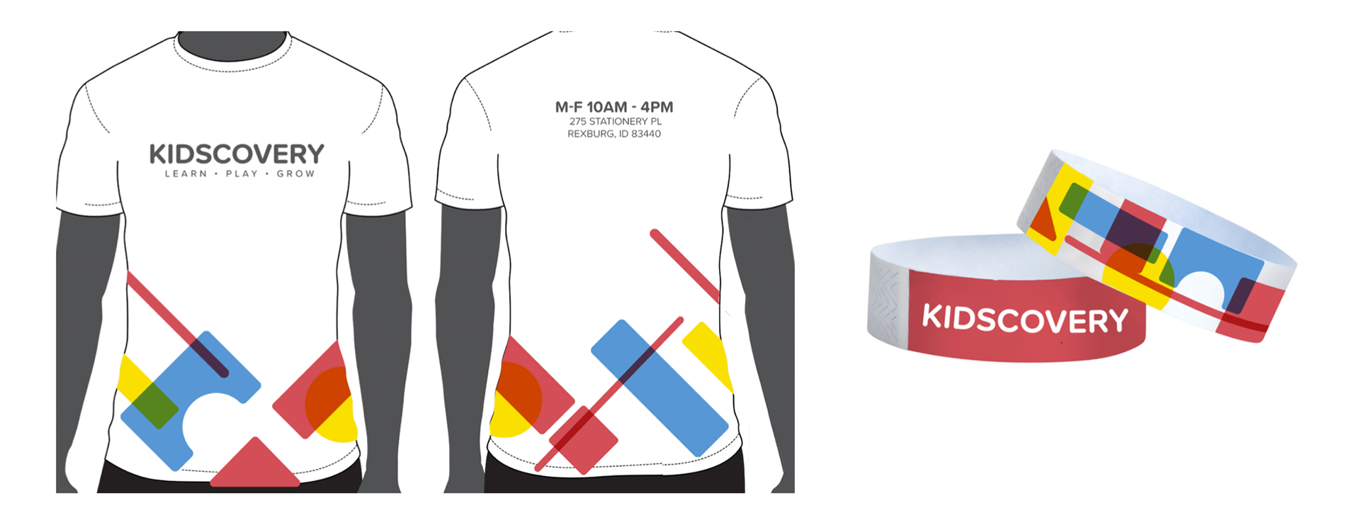I chose to develop a brand that had a dynamic element. I thought it would be fun to have the logo itself be a source of discovery for the children. So I took familiar building block shapes and used adjusted primary colors on multiply to achieve and over-printed look. This also allowed for modular renditions of the shapes to be used as patters in branding, marketing and other materials.
